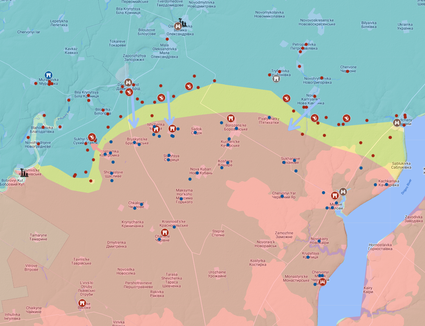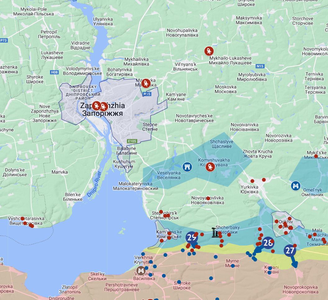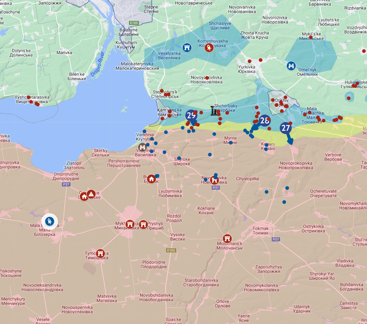 South of Hulyaipole, Ukraine is attacking Kostyantynivka (26). Ukraine is making progress in this direction, but it is slow. Hulyaipole is heavily shelled and targeted with S-300 missiles, one of which destroyed a school.